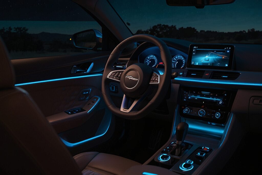 Central Console Lighting- Central console lighting enhances a car’s interior aesthetics and functionality by illuminating key areas like cup holders, storage compartments, and control panels. It provides a stylish ambiance while improving visibility for night-time driving.